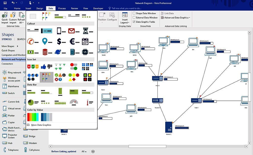 Take advantage of over 60 built-in templates, many with updated shapes. Visio Pro for Office