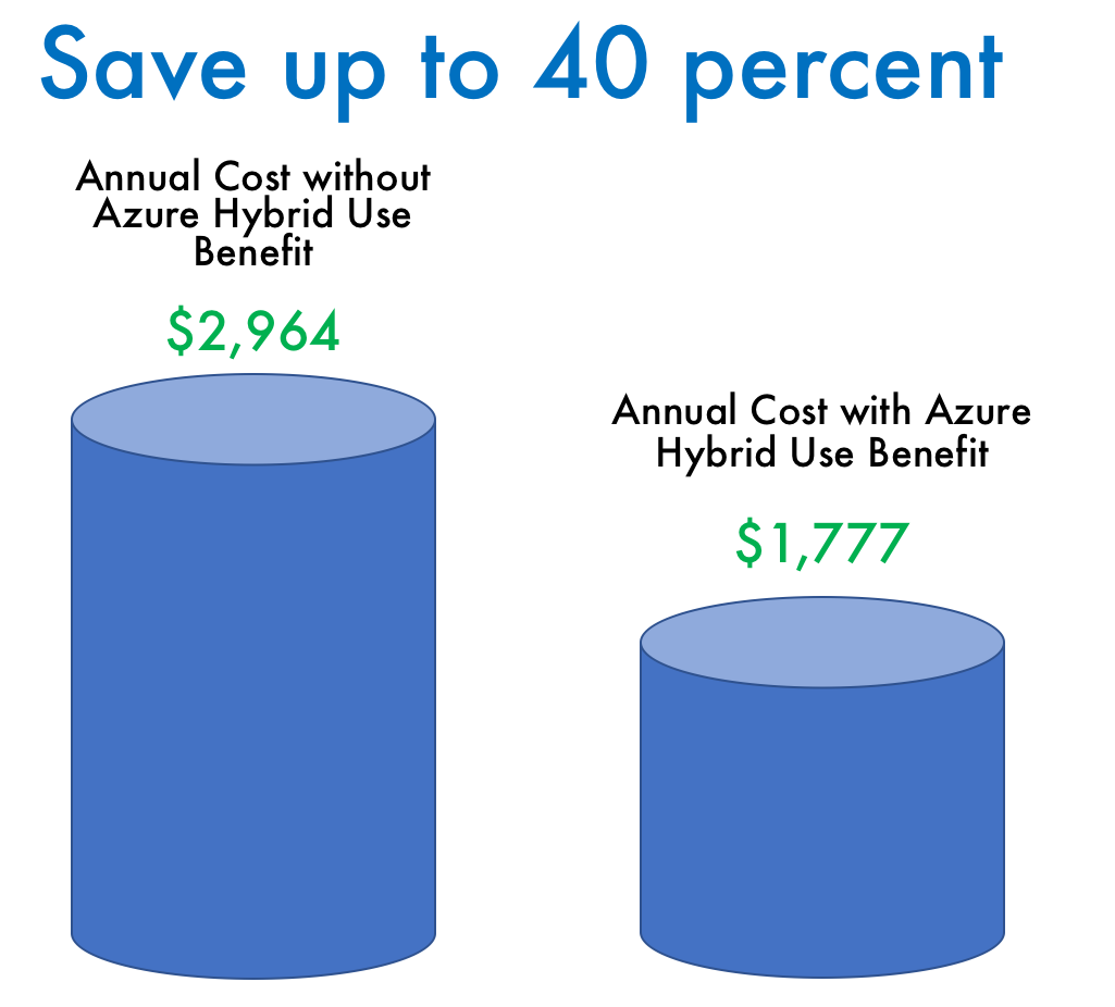 Instead of paying full price for a new Windows Server virtual machine, you'll only pay the base to compute rate.
